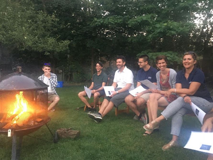When the percorso ended, I immediately wanted to share this beauty with my friends in the choir in Toronto. With Anthony and Amy, we discussed restarting the choir after a year-and-a-half long hiatus and wanted to propose something beautiful for our first get-together; this ‘percorso’ fit the bill perfectly. I asked Andres if he could play the guitar. I asked Marco if he could lead some of the unknown Italian songs. I asked Adam if he could read the translations of the songs. All of them gladly said yes. We gathered on a weeknight in my backyard for a potluck dinner and, after dinner, followed the percorso around a bonfire.